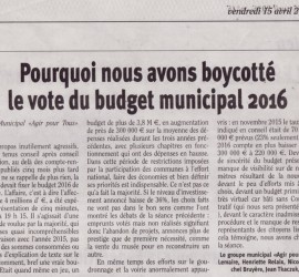 Lisle sur Tarn : Budget municipal Bilan des comptes 2015 présenté en Conseil 2 mois après le vote du Budget primitif 2016. Près de 70% des engagements pris en Avril 2015 par la majorité, non réalisés notamment sur le poste travaux et voirie.