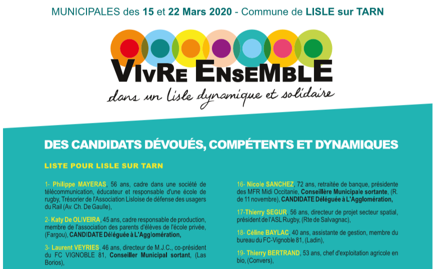 Campagne municipales 2020: Vivre Ensemble